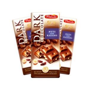 تابلت شکلات تلخ ۵۰ درصد کشمش و کرانچ فندق پوبدا