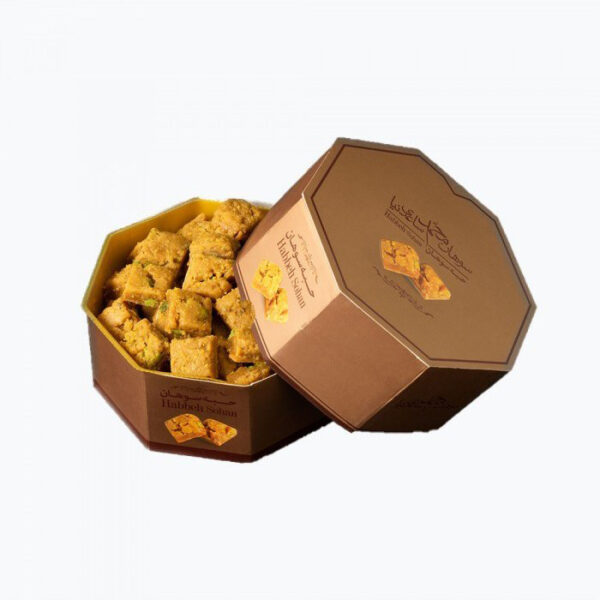 ۲۵۰ گرم. ابعاد ۱۲*۱۲، آرد جوانه گندم، کره حیوانی، زعفران، هل، آرد، شکر، تخم مرغ